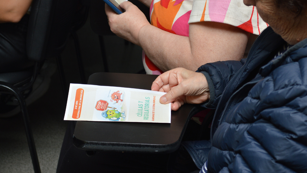 Como novedad frente a las anteriores ediciones, esta vez la actividad contó con la presencia de un equipo del Instituto de Estudios Inmunológicos y Fisiopatológicos (IIFP, CONICET-UNLP-asociado a CICPBA) que brindó folletos e información sobre las vacunas en la sala de espera, a la vez que evacuó dudas de quienes se acercaban, y aprovechó para hacer divulgación sobre el tema en general en la víspera del Día Internacional de la Inmunología, celebrado cada 29 de abril. Las expertas que se dieron cita fueron las investigadoras del CONICET Marina Biedma, Renata Curciarello, Cecilia Muglia y Constanza Bondar, y las becarias del organismo Andrea Crivaro y Lila Echavarría.