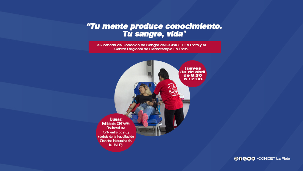 Titulada “Tu mente produce conocimiento. Tu sangre, vida”, la colecta está destinada a todo el personal científico- académico de la región, más allá de su vínculo con el CONICET, y también a familiares y comunidad de cercanía en general. La intención es aportar desde un costado humano al sistema de salud público a través de una acción voluntaria, desinteresada y sin riesgos asociados. Los/as participantes recibirán el correspondiente certificado y una colación luego de la donación. Aquellos/as que quieran hacerlo, pueden completar este formulario de asistencia para poder contar con un número estimado de las personas que se acercarán.