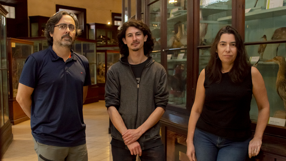 Irazoqui -centro- junto a Javier Gelfo y Carolina Acosta Hospitaleche, también autores de la publicación. Fotos: CONICET Fotografía/R. Baridón.