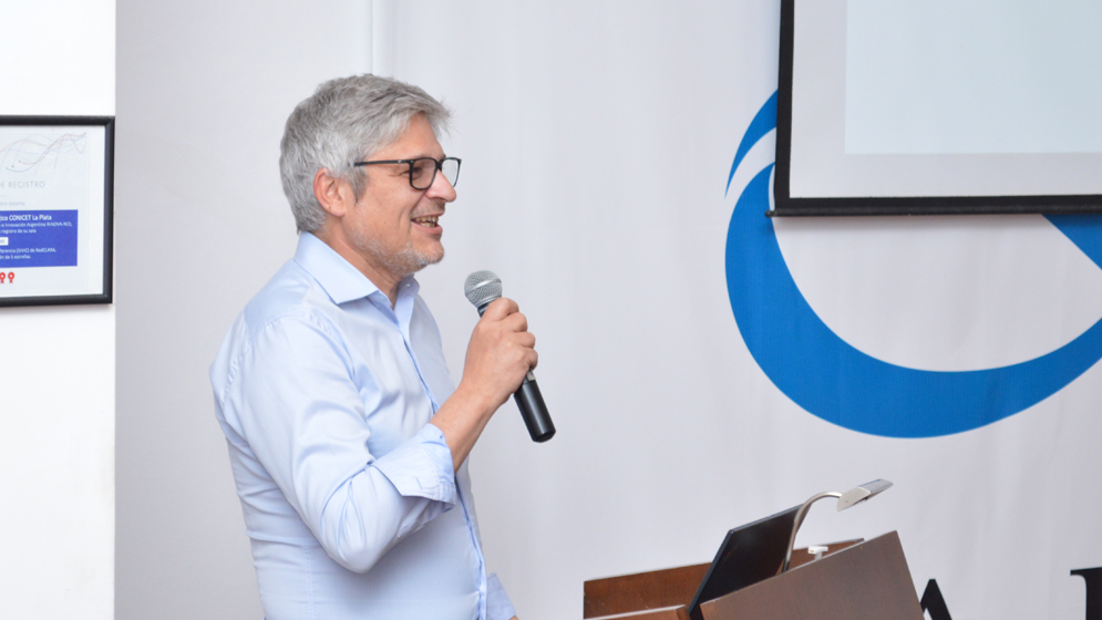 El director del organismo, Gonzalo Veiga, durante la apertura. Fotos: CONICET Fotografía/R. Baridón.